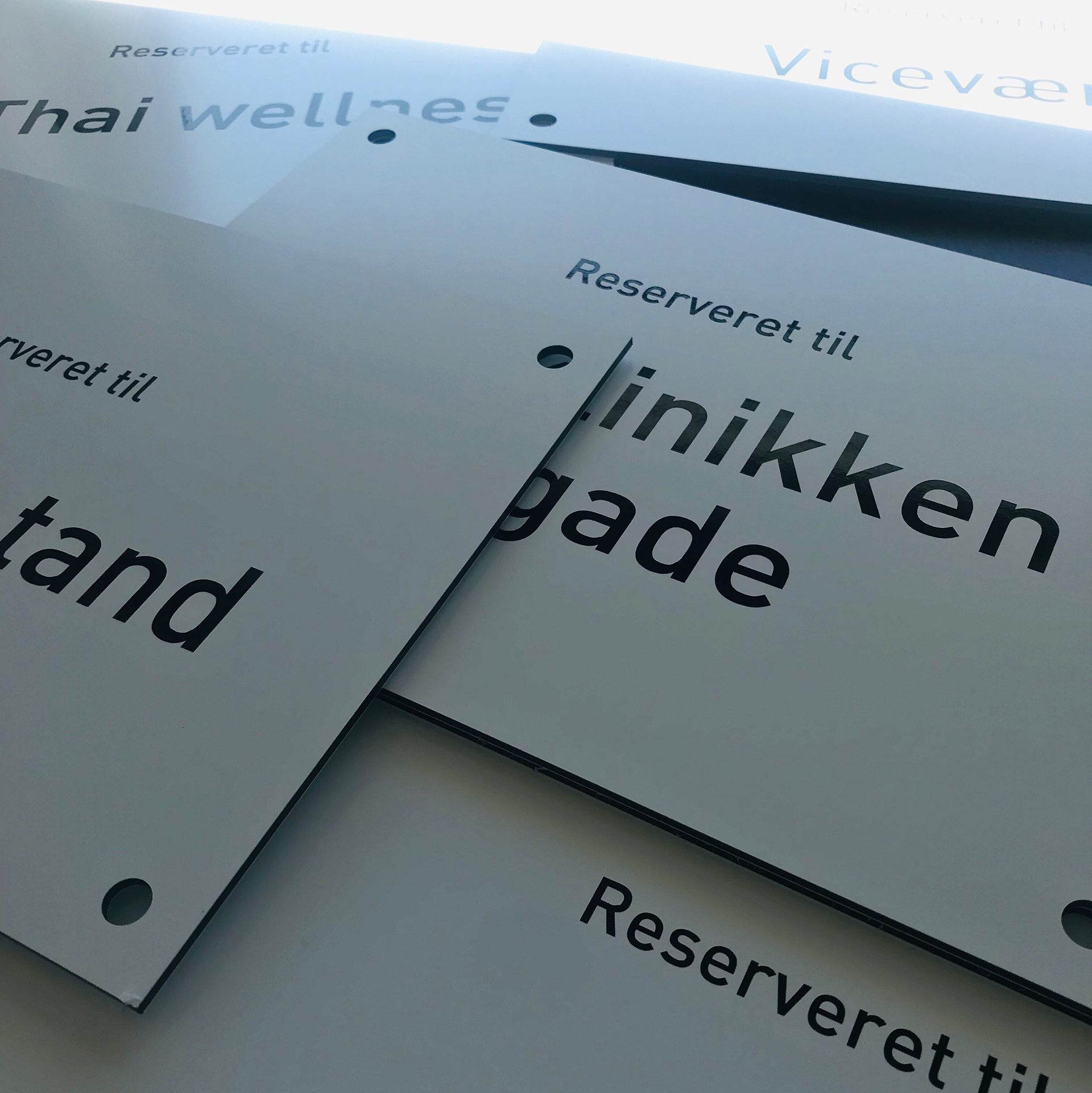 Metal skilte med navn viser hvem der må parkere hvor 🆒 Jeg har lavet 9 alu sandwich skilte med konturskåret bogstaver til p-pladsen 🤩 Har din virksomhed også brug for et skilt?