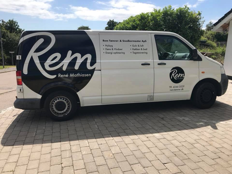 Design og montering af reklame folie på biler til Rem Tømrer- & Snedkermester.
